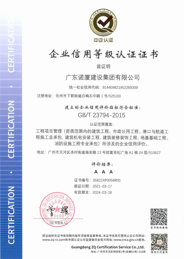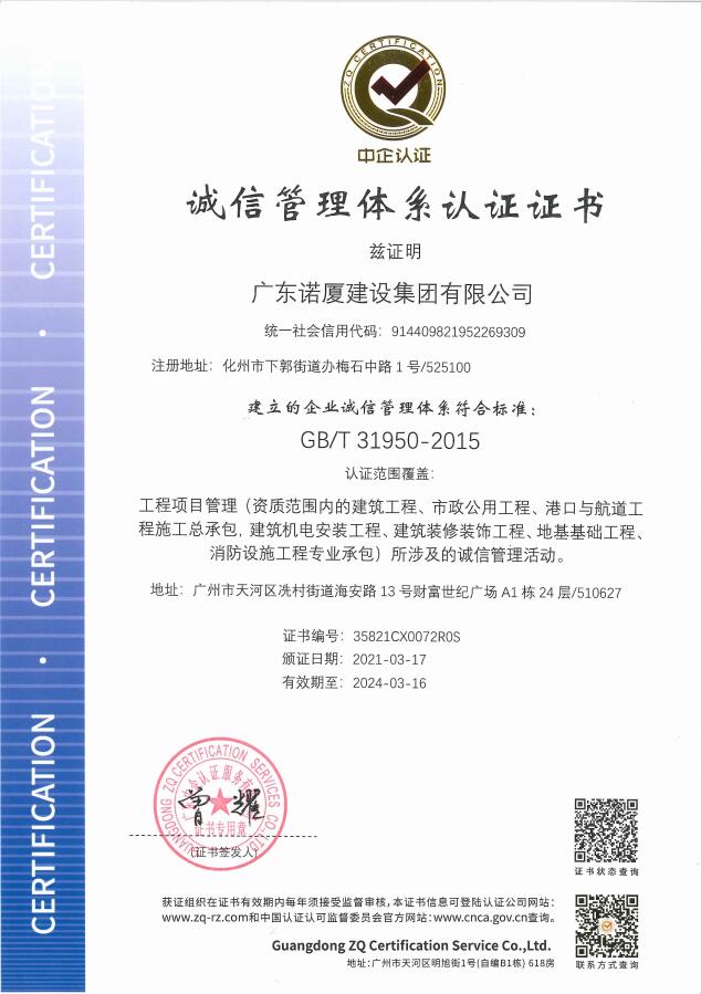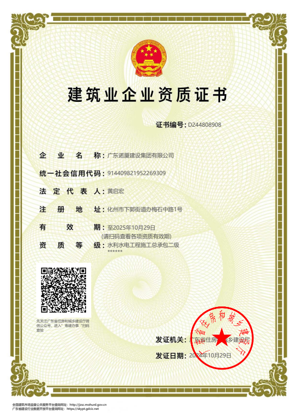 廣東諾廈建設(shè)集團(tuán)有限公司是諾廈集團(tuán)的核心企業(yè),具備國家房屋建筑工程施工總承包壹級、市政工程施工總承包壹級、港口與航道工程總承包、建筑裝修裝飾工程、消防設(shè)施工程、地基基礎(chǔ)工程、機電設(shè)備安裝工程、體育場地設(shè)施工程、建筑智能化工程、河湖整治工程、水利水電工程等資質(zhì)。......